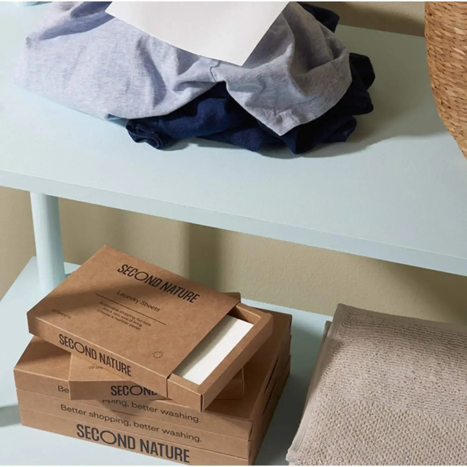 Second Nature Laundry Sheets, vrij vertaald wasstrips, zijn een veiligere en milieuvriendelijkere manier om de was te doen. De sheets zijn gemaakt van biologisch afbreekbare ingrediënten, direct oplosbaar zonder residu. Je kan de sheets gebruiken bij alle temperaturen en bij alle soorten was.